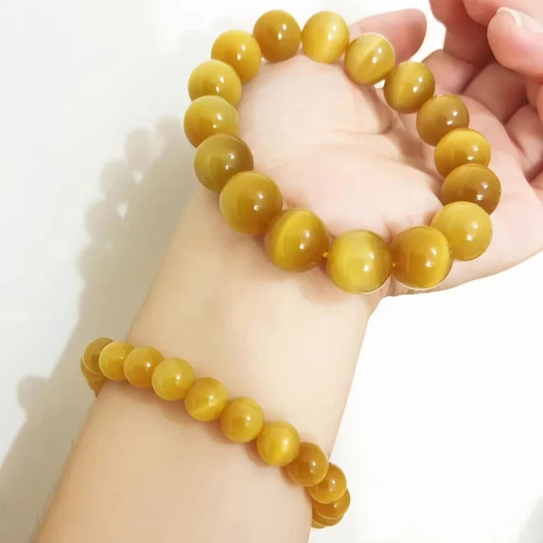 14mm Natural Gold Yellow Tiger Eye Gemstone Crystal Round Bead Bracelet AAAA