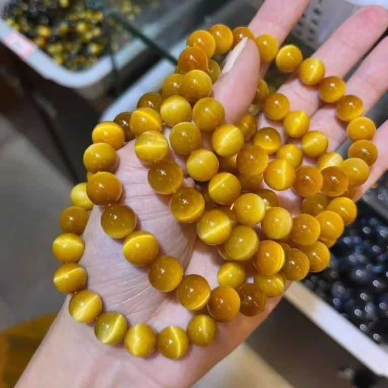 16mm Natural Gold Yellow Tiger Eye Gemstone Crystal Round Bead Bracelet AAAA